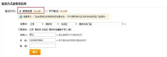 1、苏宁门店自提